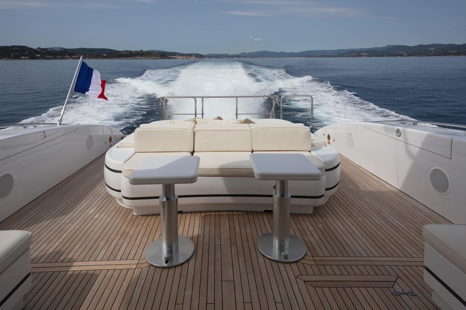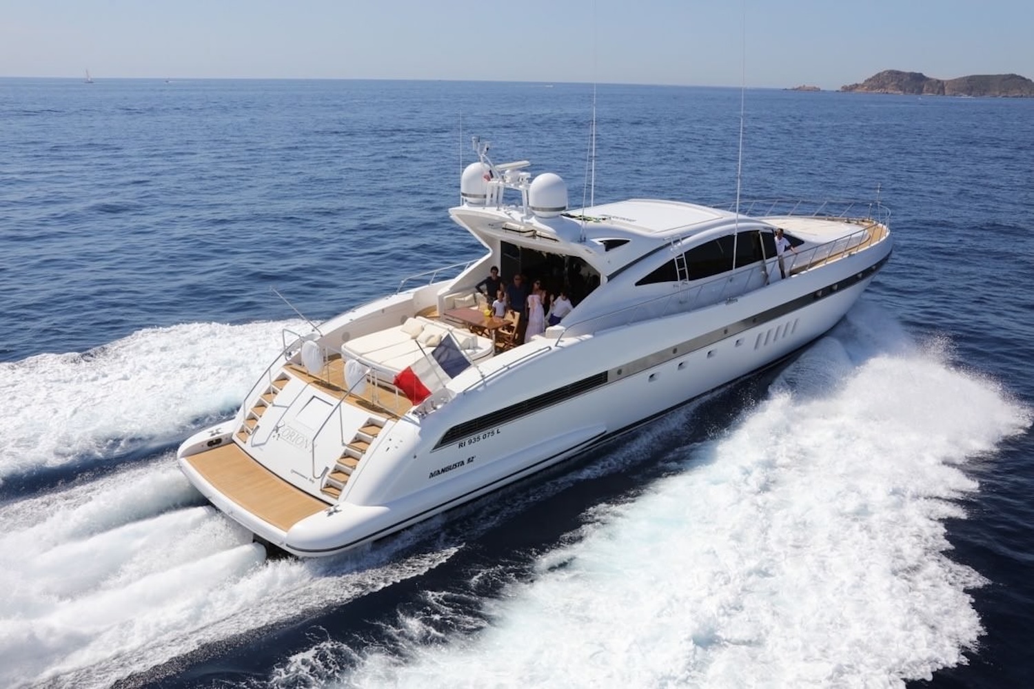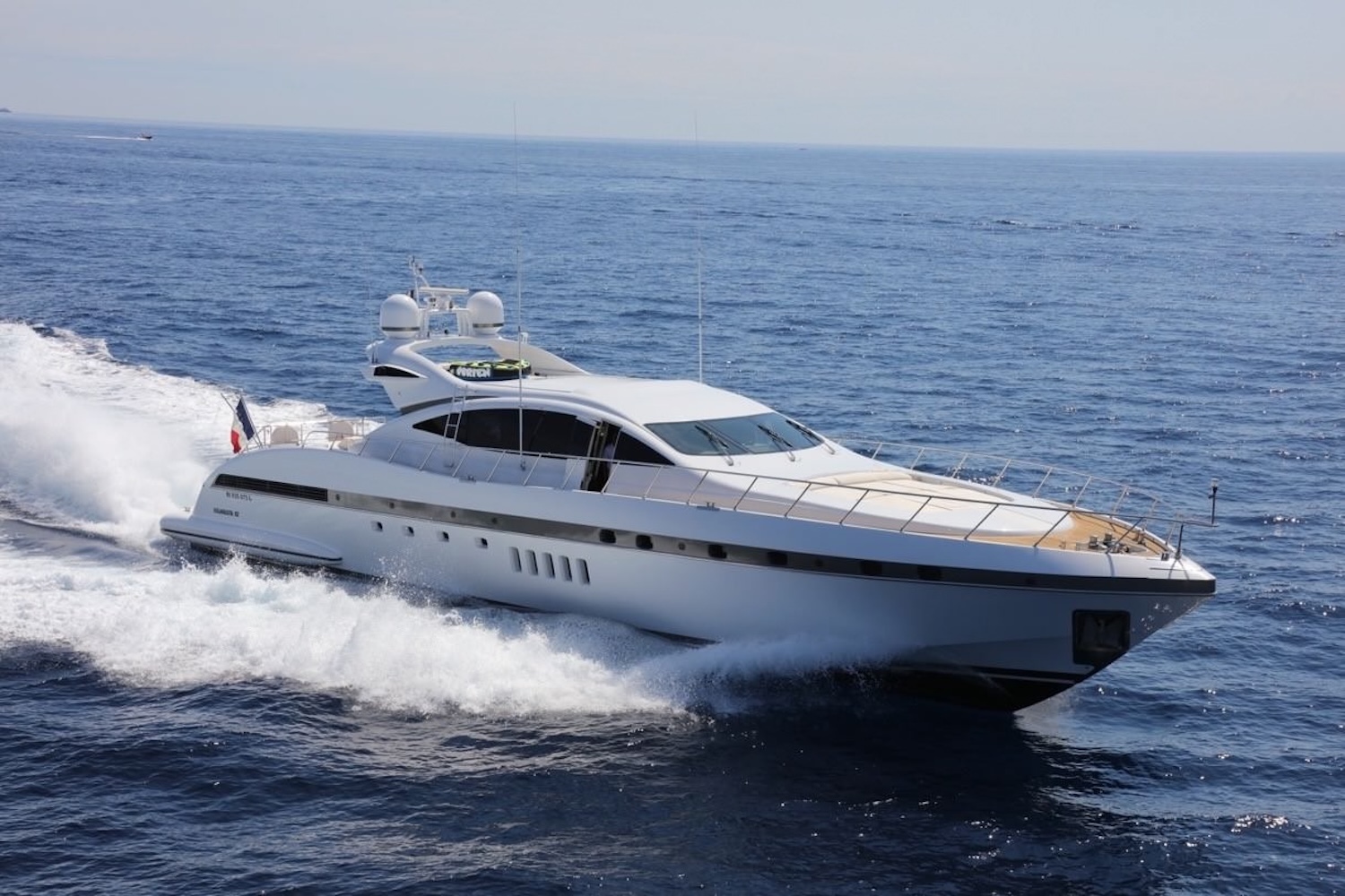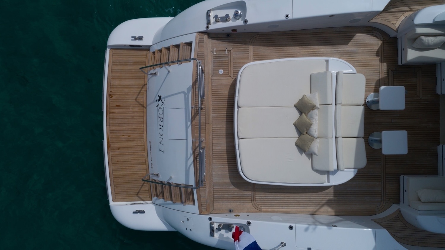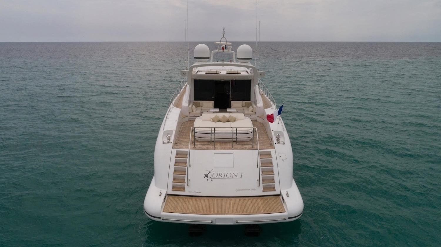 Mangusta 92 Yacht ORION I for charter on the Côte d'Azur. Based in Marines de Cogolin, near to Saint Tropez.